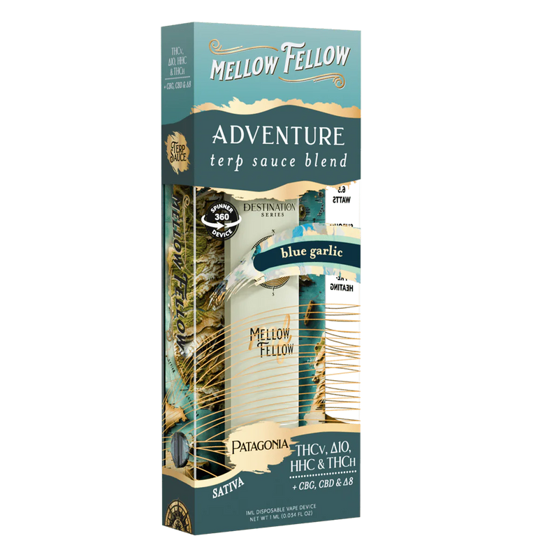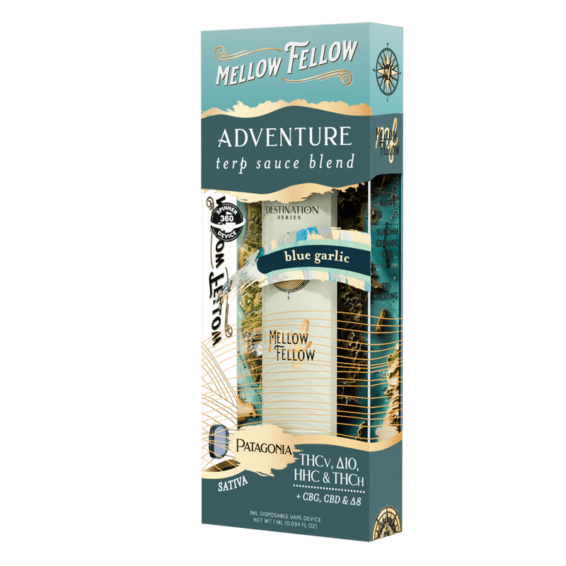 - Please Copy coupon before purchasing Mellow Fellow Adventure Blend - Terp Sauce 1ml Disposable Spinner Vape - Blue Garlic (Sativa).Â