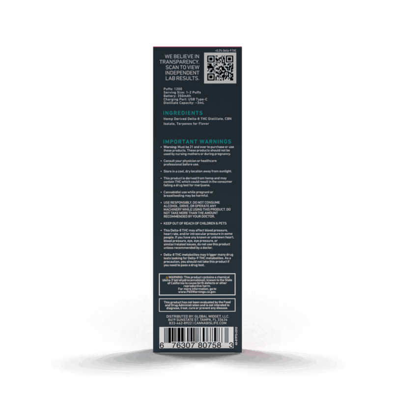 WARNING: This product: Berry Gelato Indica Delta 8 Disposable Vape Pen 3ml may contains nicotine. Nicotine is an addictive chemical.
