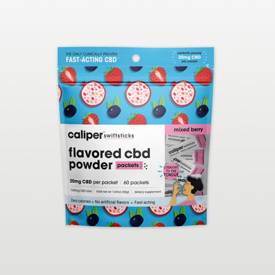 At last, there’s a great-tasting way to get your CBD on the go: Caliper Swiftsticks! Each stick delivers a perfectly precise 20mg of CBD with a delicious berry flavor that will have you feeling like a kid again. Need an afternoon boost but tired of late-day caffeine keeping you up at night? Caliper Swiftsticks are the answer! Just sprinkle it on your tongue and let it dissolve deliciously. These delightful sweet treats can be kept in the kitchen, handbag, pocket, or suitcase; no measuring, no mess. As always, our products contain 0.0% THC, and are GMO-free and vegan.