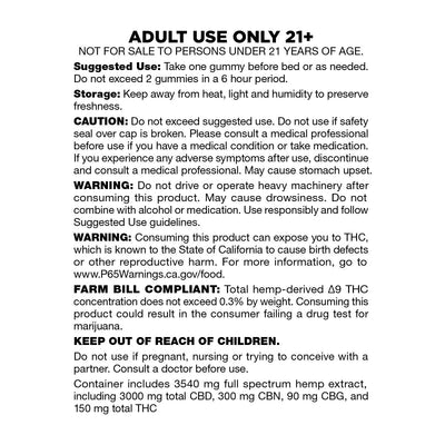 Derived from US-grown hemp, it provides the perfect formula of CBD, CBN, CBG, and THC.