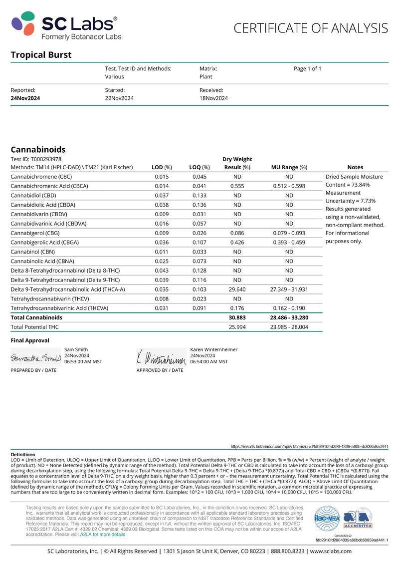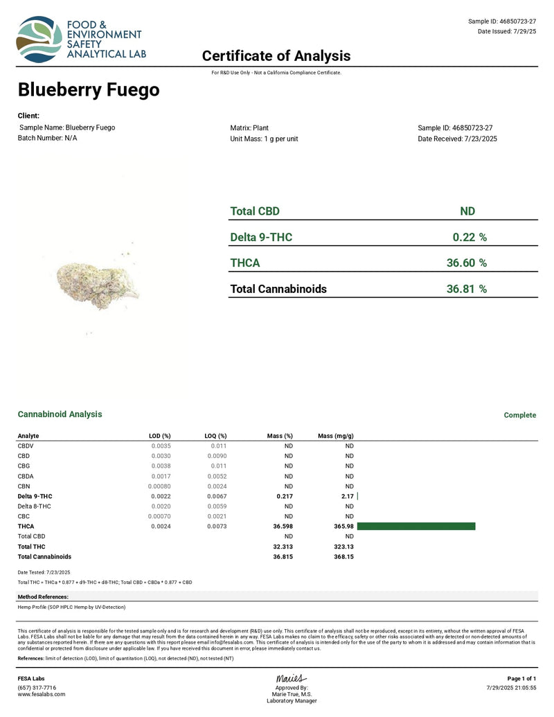 - COA lab results available
