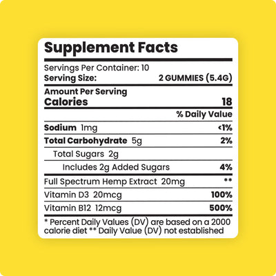 - 10mg Full Spectrum CBD per gummy