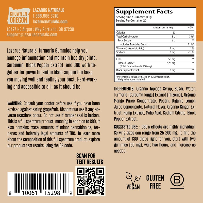 Lazarus Naturals CBD GUMMIES, TURMERIC