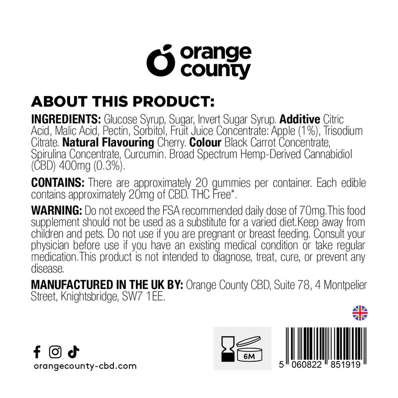 Sink your teeth into our cherry-flavoured CBD gummies to instantly transport yourself to evenings at the arcade and sing-alongs to your favourite boyband’s CD. Made in an iconic shape and flavour - and the burst of our broad-spectrum CBD is the cherry on the cake.