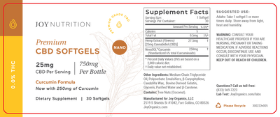 WARNING: This product: Joy Organics 25mg CBD Softgels with Curcumin may contains nicotine. Nicotine is an addictive chemical.