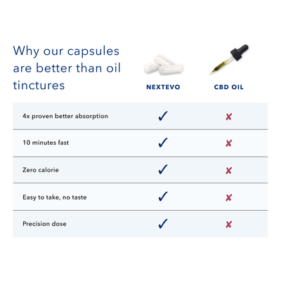 Our CBD capsules now feature 40mg of CBD per tablet! Our new CBD capsules are still made with 100% US-grown natural hemp, and provide a pure, strong, fast-acting dose of water-soluble CBD whenever you need it. Our only CBD offering that is 6x Absorption: Our CBD products have excellent bioavailability allowing you to take less and get more per capsule.