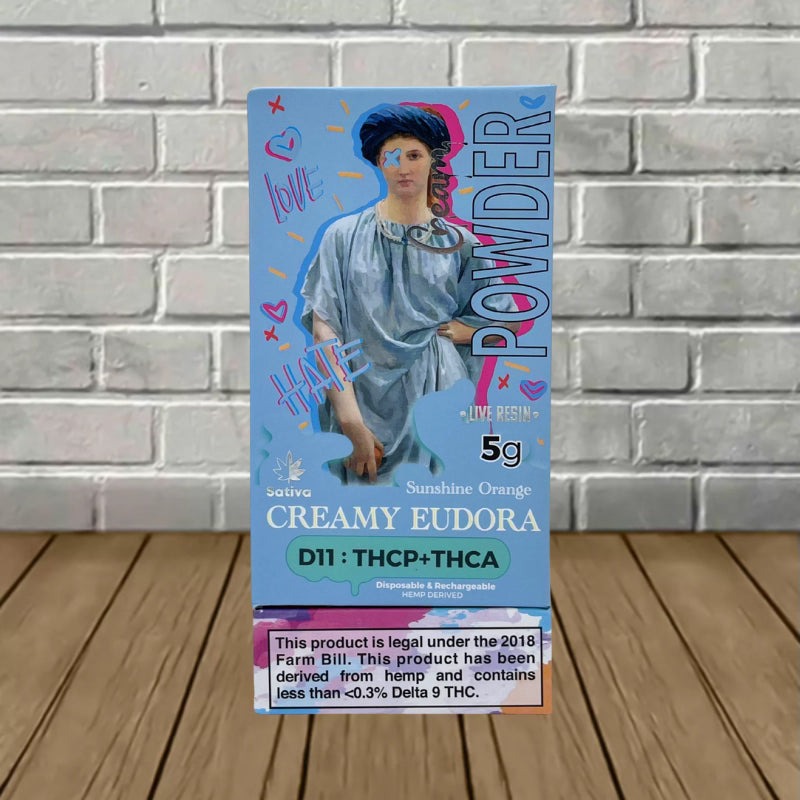 - Creamy Eudora (Sativa) – Sunshine Orange brings a bright citrus kick that feels refreshing from the first inhale. It leans into a clean, zesty profile that matches the energetic and uplifting feel of a sunshine orange vape flavor and keeps things lively for fans of sativa THCa disposables.