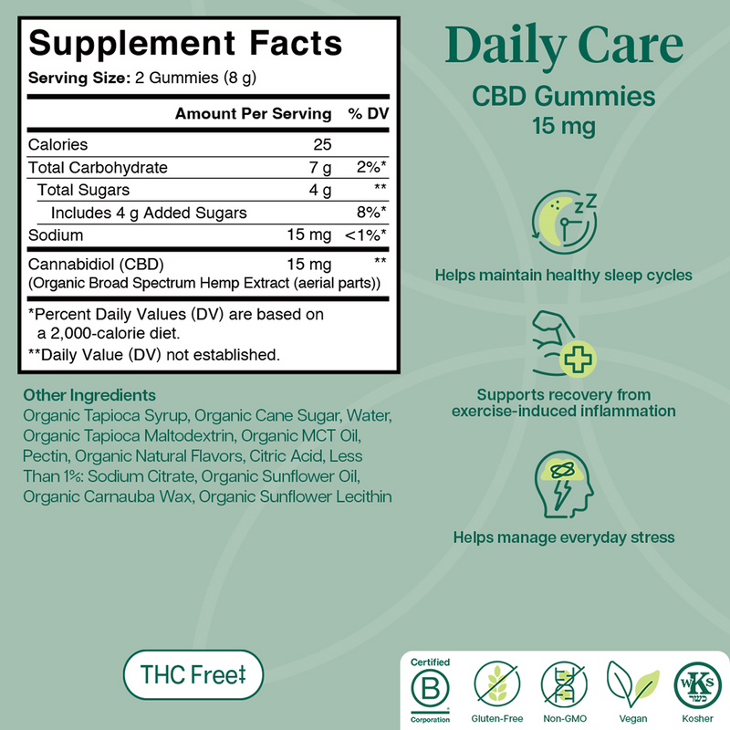 WARNING: This product: Charlotte's Web Daily Care THC-Free CBD Gummies may contains nicotine. Nicotine is an addictive chemical.