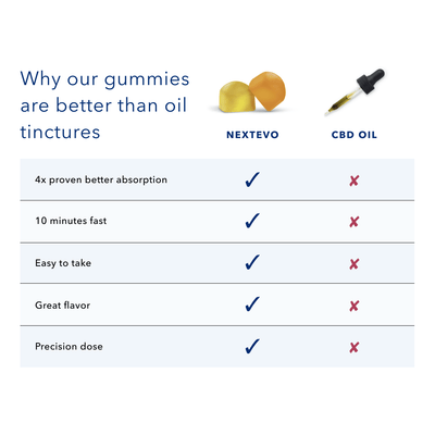 Enjoy NextEvo Naturals SmartSorbâ„¢ CBD technology in a tasty fruit gummy. Premium Pure CBD Gummies deliver 10 mg of CBD with the sweetness of summer berries or refreshing citrus. Chewable gummies are easy to take and convenient for on-the-go occasions so you can boost your natural wellness wherever you are!