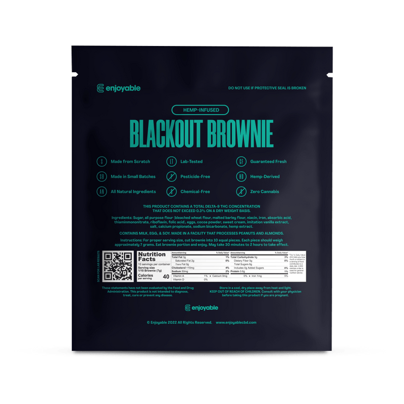 WARNING: This product: Enjoyable - Blackout Brownie - Delta-8 THC - 1000MG may contains nicotine. Nicotine is an addictive chemical.