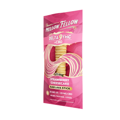 WARNING: This product: Mellow Fellow Delta 9 THC + CBD Baklava Sticks - Strawberry Cheesecake 40mg may contains nicotine. Nicotine is an addictive chemical.