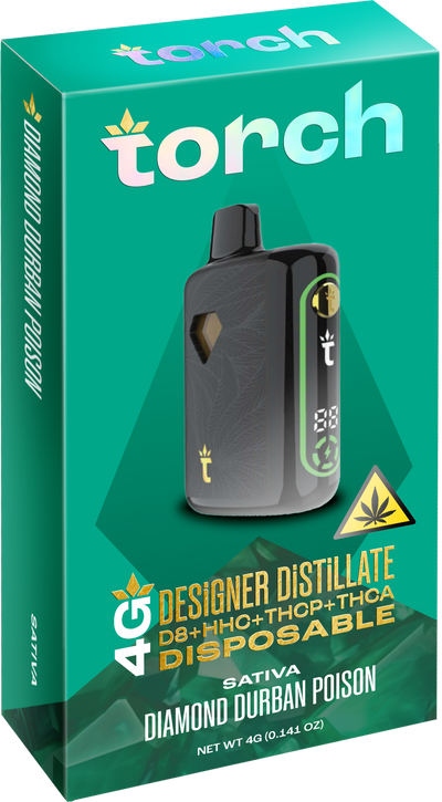 - Please Copy coupon before purchasing Torch Designer DiSTiLLATE Disposable Diamond Durban Poison | Sativa | 4g.Â