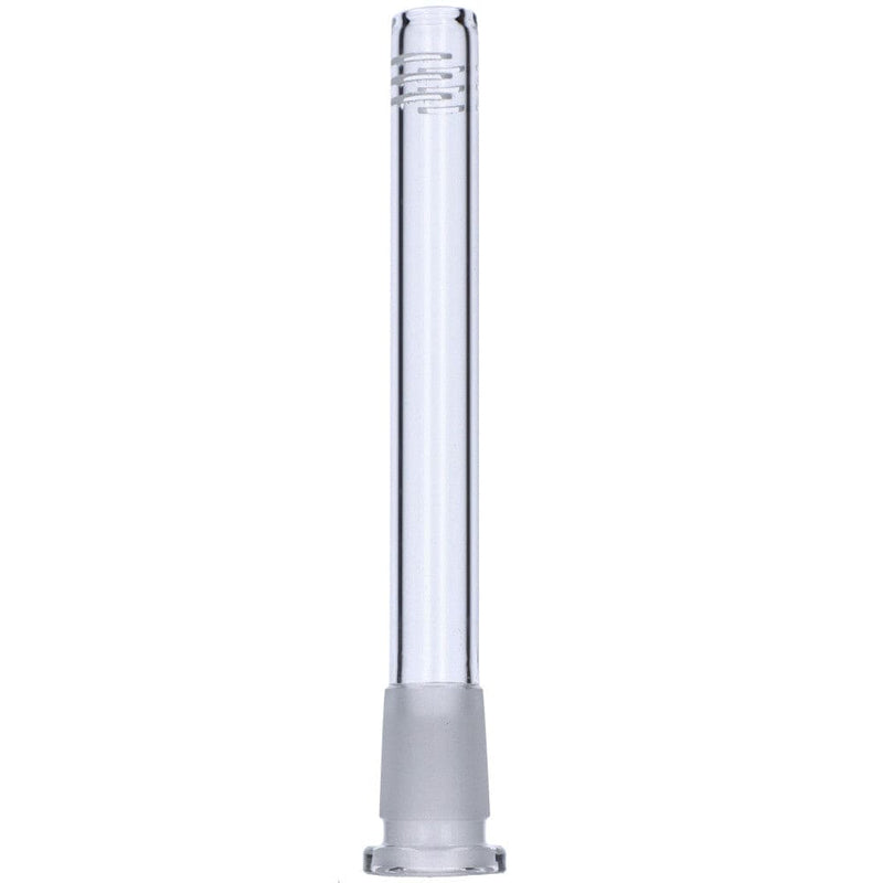 This replacement downstem is 4.5in/114mm long and is used to connect a 14mm slide/bowl into an 18mm stemless opening. The standard 6-cut style is what you would find in most bongs.