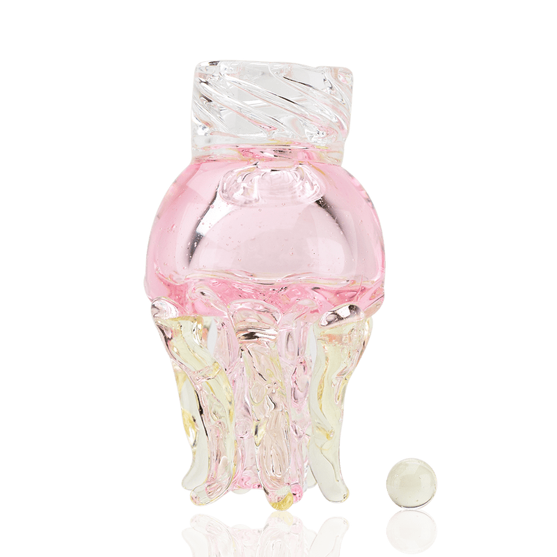 This UV Jellyfish Spinner Cap is a must-have accessory. Crafted from Borosilicate glass, this cap features intricate lampwork and is UV reactive, making it perfect for any discerning smoker. Add this unique and stylish piece to your collection today!