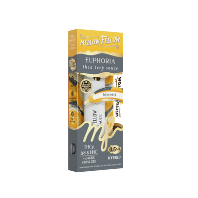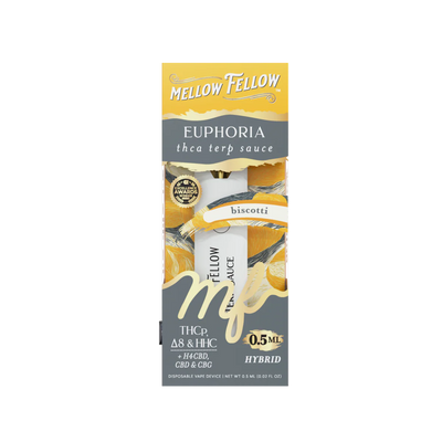 WARNING: This product: Mellow Fellow Euphoria Blend 0.5ml Terp Sauce Disposable Vape - Biscotti (Hybrid) may contains nicotine. Nicotine is an addictive chemical.