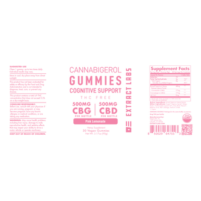 Extract Labs CBG Broad Spectrum Gummies | Cognitive Support | Pink Lemonade