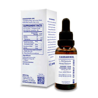 Enjoy a calm and relaxing night with our PM formula CBN oil tincture utilizing the power of hemp alone. Enjoy the benefits of CBN oil today!