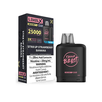 - 1xĀ Flavour Beast Level X Boost G2 25000 Disposable Replacement Pod STR8 Up Strawberry Banana Icd