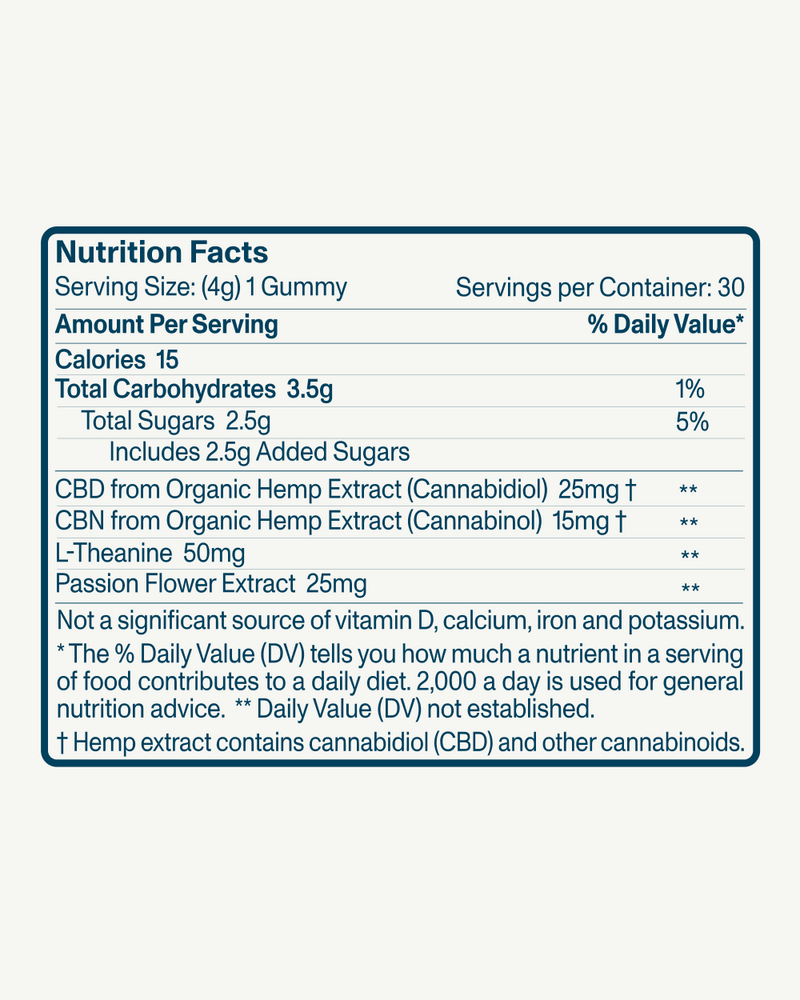 A gentle hemp sleep gummy packed with ingredients that calm the mind and support more restful sleep.