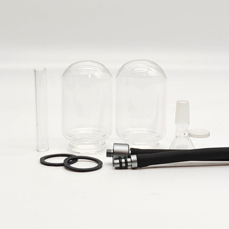 - Tool kit includes: glass bowl piece, silicone tube, and glass mouth piece