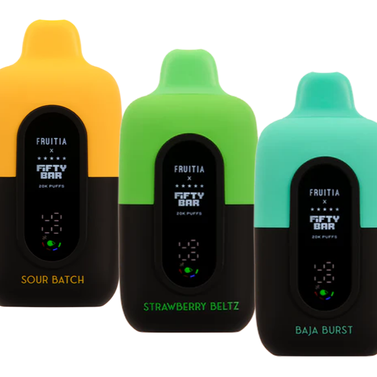 Enjoy a 3-pack, sampler pack of unbelievable Fruitia x Fifty Bar vape flavors. Formulated by American masters and filled in Thousand Oaks, CA.