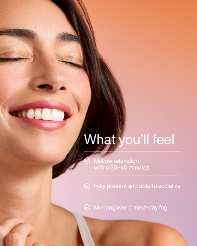 A feel-good gummy for the times you want to relax, reset, or just feel a little more like yourself—no booze, no high, no side effects. They’re perfect for unwinding on the go, easing into your evening, or just softening the edges of a stressful day.