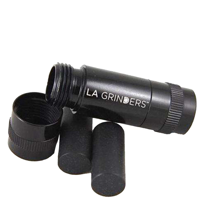Designed with premium anodized aluminum, this L.A. Grinders Pollen Press has a black main hollow outer chamber and two black end caps; the L.A. Grinders Pollen Press uses two dowels to press smaller or larger amounts of hash.