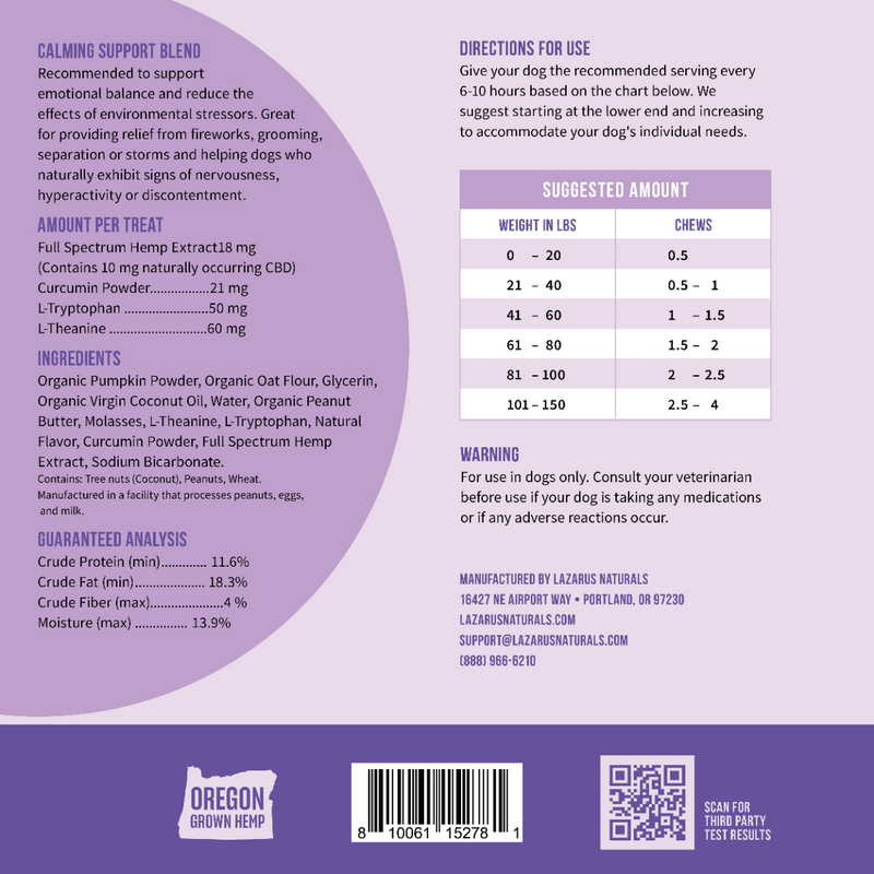 Lazarus Naturals CBD DOG CHEWS, CALMING SUPPORT
