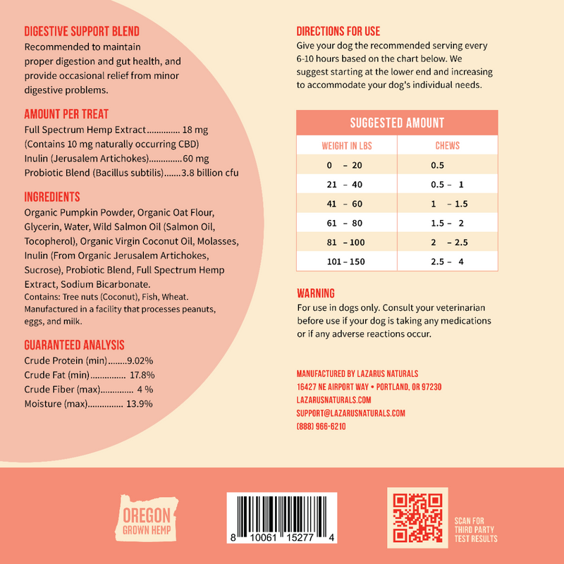 Lazarus Naturals CBD DOG CHEWS, DIGESTIVE HEALTH