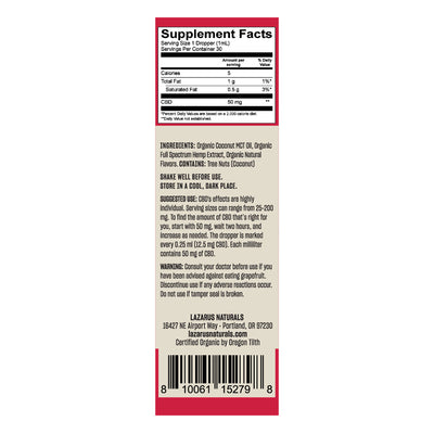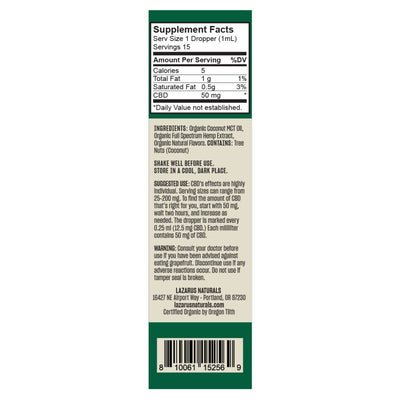Lazarus Naturals ORGANIC CBD TINCTURE, 50MG/ML