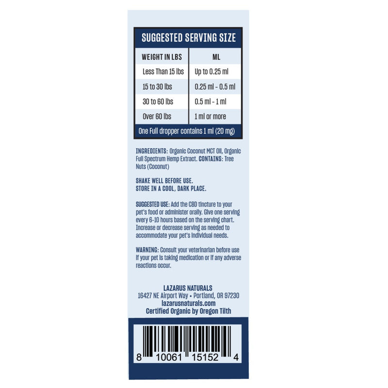 - Please Copy coupon before purchasing Lazarus Naturals ORGANIC PET CBD TINCTURE, 20MG/ML.Â