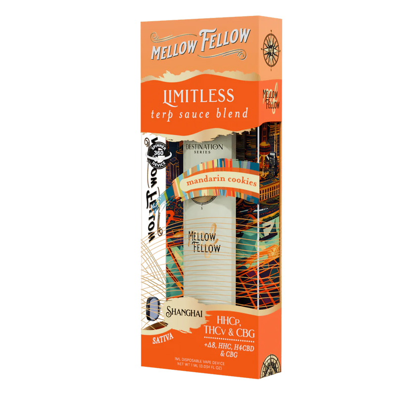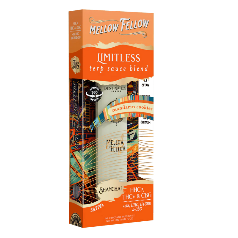 - Please Copy coupon before purchasing Mellow Fellow Limitless Blend - Terp Sauce 1ml Disposable Spinner Vape - Mandarin Cookies (Sativa).Â