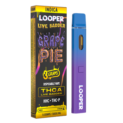 WARNING: This product: Looper Vape Live Badder 3g Disposable: Grape Pie may contains nicotine. Nicotine is an addictive chemical.
