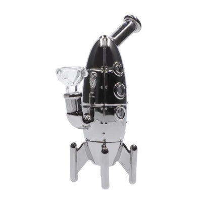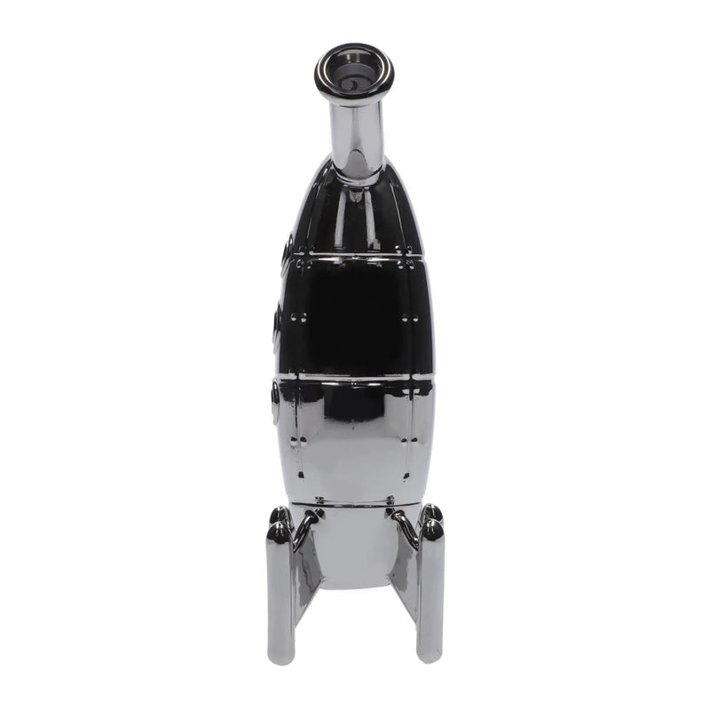The DHC Originals Silver Rocket Bong is a borosilicate glass bong designed by Daily High Club, featuring a silver-plated finish and a rocket ship theme. It's constructed from high-quality materials to provide a durable and long-lasting product.