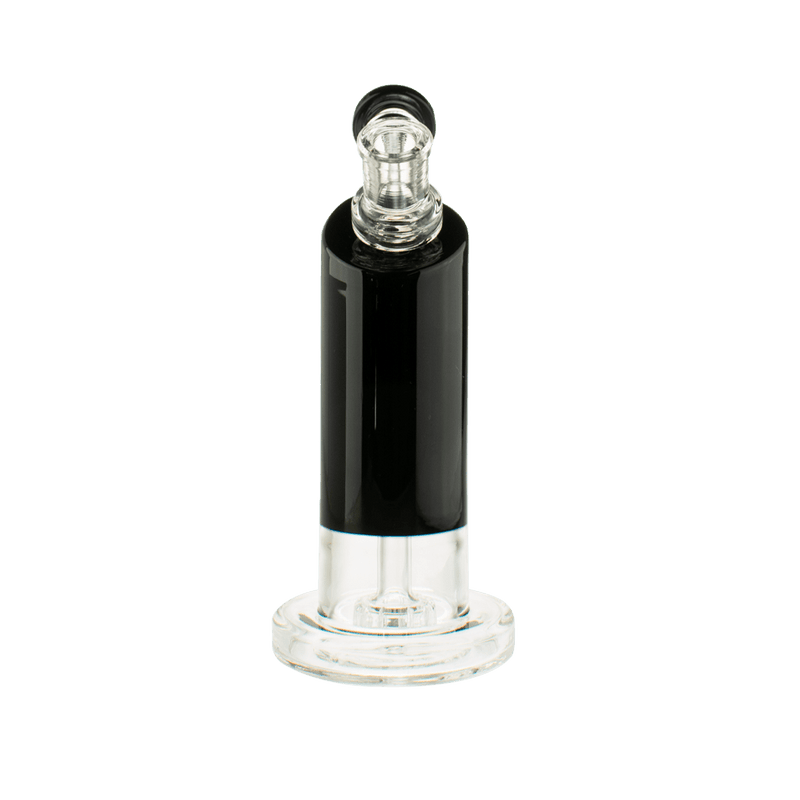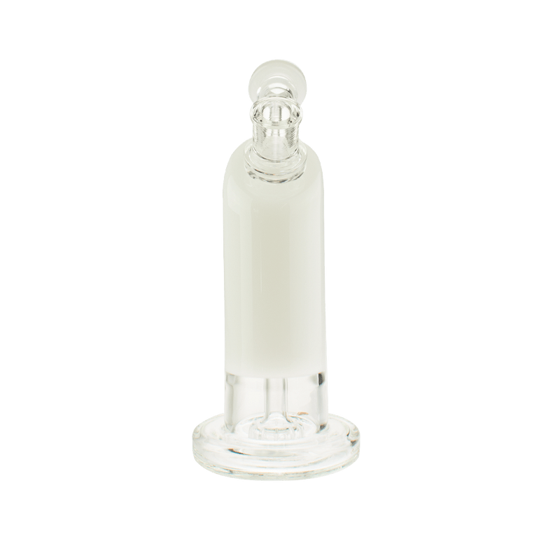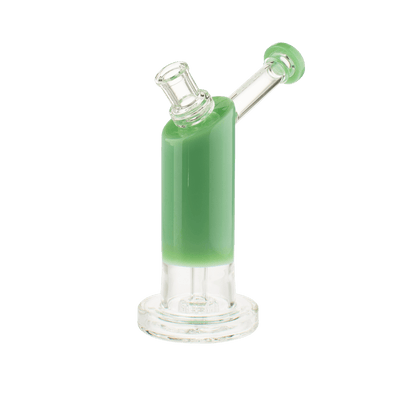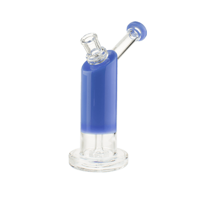 The solid and sturdy base of this bubbler combined with its size make it a versatile piece. The base is sturdy enough so you can hit the piece while its sitting on a table or desk, yet the piece is also small enough to comfortably hold in your hands while you hit it. The fixed downstem and showerhead percolation system diffuses your smoke and delivers a smooth hit while the angled neck design eliminates splashback.