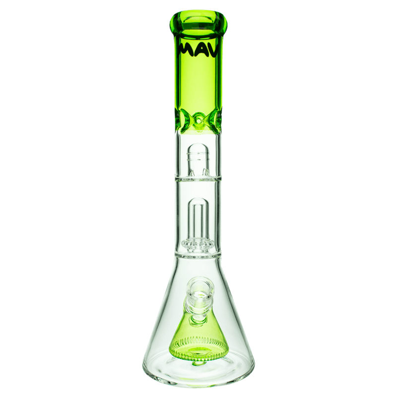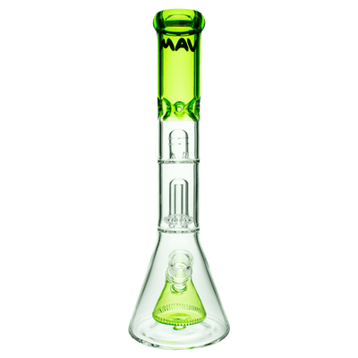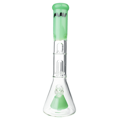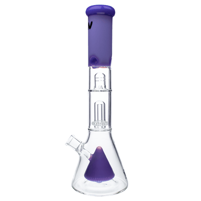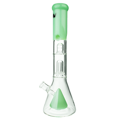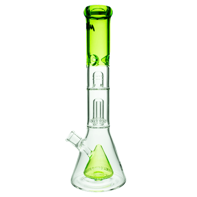 This beaker was designed with a pyramid slit perc which not only creates a great visual but also diffuses and cools your smoke before passing through the UFO perc, where your smoke is diffused once again. Add some ice to the pinch to to cool your hit one last time to create the smoothest hit possible. This tremendous 15" bong sits on an extra thick beaker bottom.