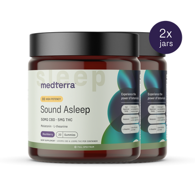 Sound Asleep gummies are the highest potency sleep aids we offer, packed with 5mg THC, 3mg melatonin, 100mg L-theanine, and 50mg CBD. They're made for active adults who want to fall asleep faster, stay asleep longer, and get a restorative slumber. Their unique formulation promotes a healthy sleep cycle for improved sleep quality, ensuring you'll wake up refreshed and ready to have a productive day.