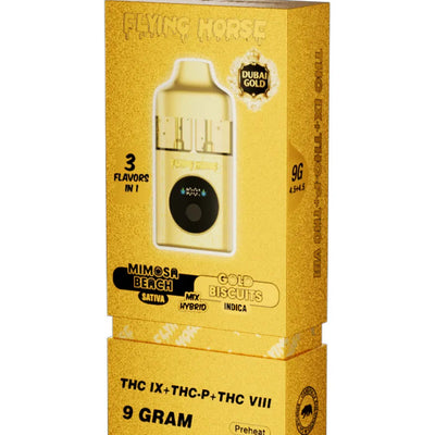 WARNING: This product: Mimosa Beach | Gold Biscuits Flying Horse Dubai Gold 3 in 1 Disposable 9G may contains nicotine. Nicotine is an addictive chemical.