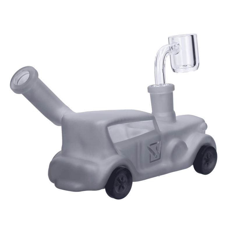 September 2023 Mobster Car BongĀ from Daily High Club. This snazzy roadster is ready to burn rubber, er, cannabis in this case. Featuring a 14mm female joint and downstem under the hood, windowed water chamber, and borosilicate glass throughout the mobster car bong provides the perfect getaway.