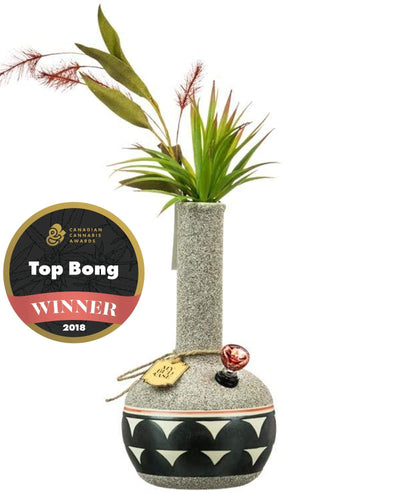 "Coyōté" was named "Top Bong" winner at the 2018 Canadian Cannabis Awards. Wander more, be curious, and seek out your adventurous side. The "Coyōté" Water Pipe from My Bud Vase allows you to break free from the ordinary. Deceptively clever with a desert like feel and look, "Coyōté" is here to guide you to a new way of smoking. My Bud Vase water pipes help you enjoy your dry herbs while keeping the main purpose private. Be wild at heart. Simply turn the rubber grommet joint away from sight lines and guests will assume you just have a great taste in vases. The sand-like texture and matte Aztec style design wrapped around the base give "Coyōté" a rugged yet wise appearance.