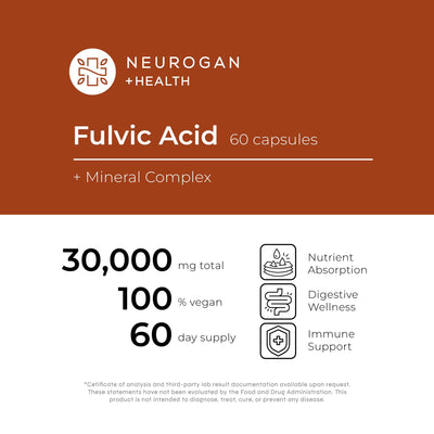 Dosage: Take 1 capsule per day with food and water. Neurogan Fulvic Acid Capsules are vegan and made in USA. Each bottle contains 60 capsules.