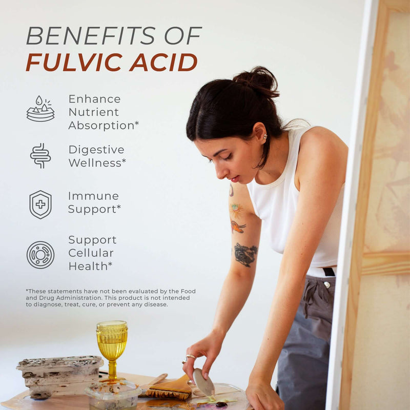 The highest potent 500mg Fulvic Acid Complex Capsules, with 80 trace minerals to boost energy, support immune health & improve nutrient absorption. Derived from shilajit, with fulvic acid as the main compound, these gluten-free, non-GMO, and vegan capsules provide a natural dietary supplement for optimal well-being.
