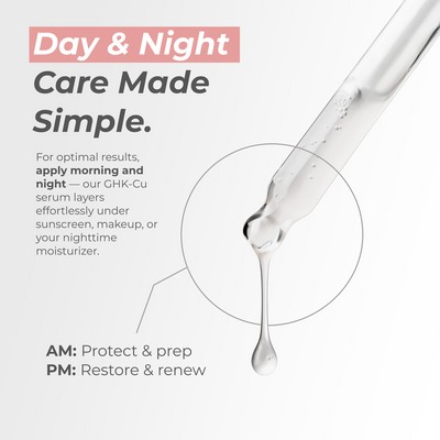 GHK-Cu Neck & Face Serum features a 4% concentration of Copper Tripeptide-1. This lightweight, everyday-use serum is enriched with a naturally derived copper complex to support skin barrier health. The ingredients are blended together to make it appropriate for all skin types, including sensitive skin.