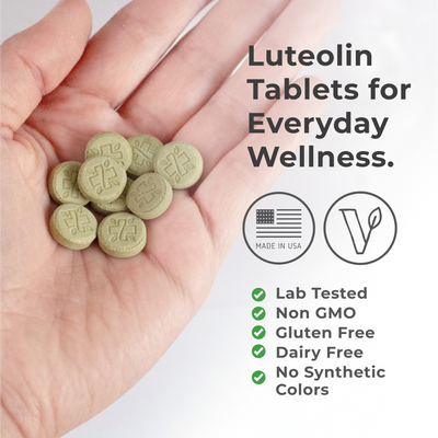 Luteolin supports antioxidant activity, brain function and immune health with 200mg per serving, 120 plant-based tablets per bottle. Its a natural flavonoid extracted from vegetables like celery, parsley, and green peppers. Gluten-free, easy-to-take, and ultimately the best luteolin choice online, if you ask us.