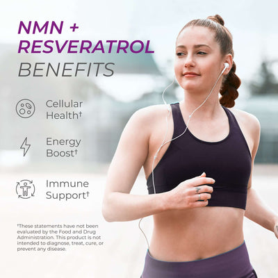 NMN + Resveratrol capsules work together to support cardiovascular health, healthy aging, and boost NAD+ levels while protecting cells. Lab-tested and proven, this natural combination is free from pesticides. Each mixed supplement serves 1200mg, with 90 capsules per bottle.