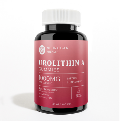 The first-ever Urolithin A gummies on the market, packed with 1000mg per serving, using pure Urolithin A extract and natural, vegan-friendly ingredients. Take 1 or 2 gummies daily to support cellular function. These strawberry-flavored gummies not only taste great but also have a texture and look similar to Starbursts.