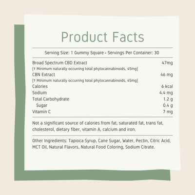 Getting a good night's sleep is essential for starting the day off right. That's where our broad-spectrum CBN Calm Gummies come in to help. CBN is a minor cannabinoid that's been found to support deep, restful sleep.