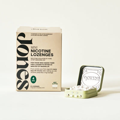 Jones mint-flavored nicotine replacement lozenges are the most effective and discreet way to quit vaping or smoking. Our FDA-approved mints help you manage nicotine cravings on-the-go so you can reach your quitting goals. Pair Jones mint lozenges with our free app that uses science-backed quitting techniques and 24/7 support to help you quit for good.