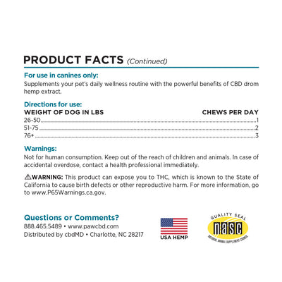 WARNING: This product: Paw CBD Broad Spectrum CBD Dog Hard Chews may contains nicotine. Nicotine is an addictive chemical.