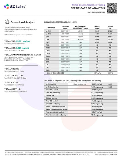 Sodium Citrate, Industrial Hemp Oil (contains Delta-9 THC).